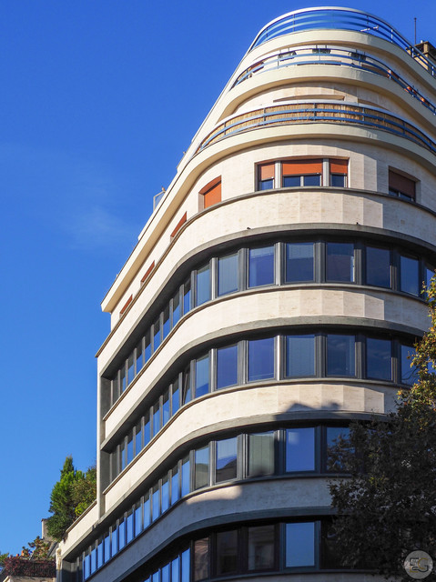 Architecture moderne pour cet immeuble d’angle dans la tradition de ceux de l’entre-deux-guerres.